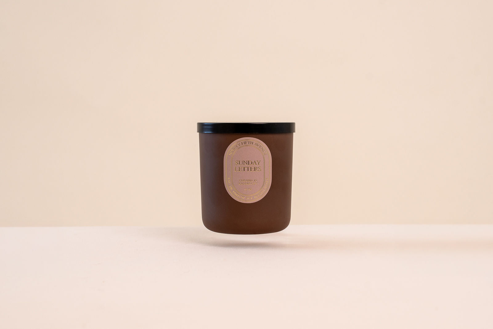 Sunday Letters captures the serenity of quiet mornings and the warmth of familiar love. It opens with the brightness of apple, lemon zest, and bergamot, gently grounded by the earthy decadence of black truffles. As the flame settles, a heart of violet and lingonberry emerges — soft, nostalgic, and quietly magnetic. Finally, the scent deepens into a lingering embrace of maple wood, oak wood, amber, vanilla, and musk — a sensual blend that wraps the room in comfort and understated luxury.